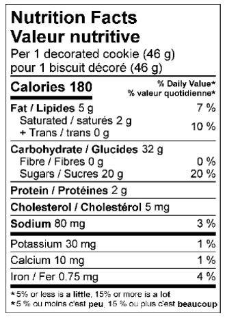 Ingredients: Cookie: Enriched wheat flour, Sugars (sugar, invert sugar), Shortening (canola oil, modified palm oil, palm kernel oil), Water, Dried whole egg, Milk ingredients, Sodium bicarbonate, Salt, Natural and artificial flavour. Icings: Sugars (icing sugar, sugar, glucose-fructose, glucose), Water, Palm oil shortening, Corn starch, Modified corn starch, Salt, Acetylated monoglycerides, Artificial flavour, Polysorbate 60, Potassium sorbate, Titanium Dioxide, Citric acid, Allura red, Beet red, Brilliant blue, Tartrazine. Pastel quins: Icing sugar, Modified palm kernel oil, Modified corn starch, Sunflower lecithin, Beet red, Sunset yellow, Tartrazine, Brilliant blue, Shellac.